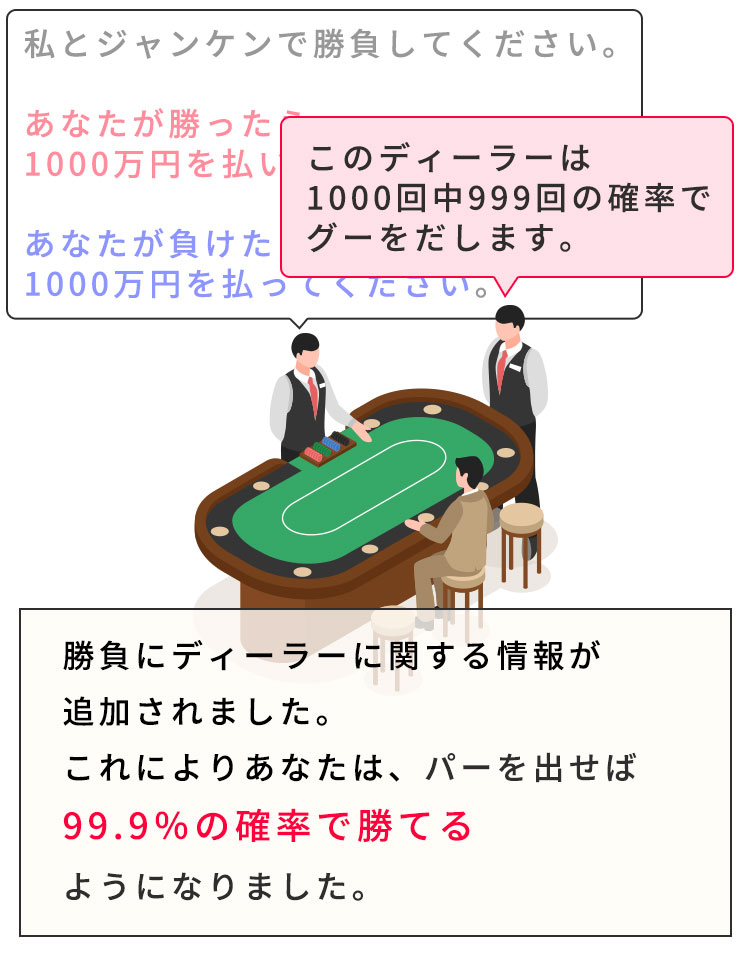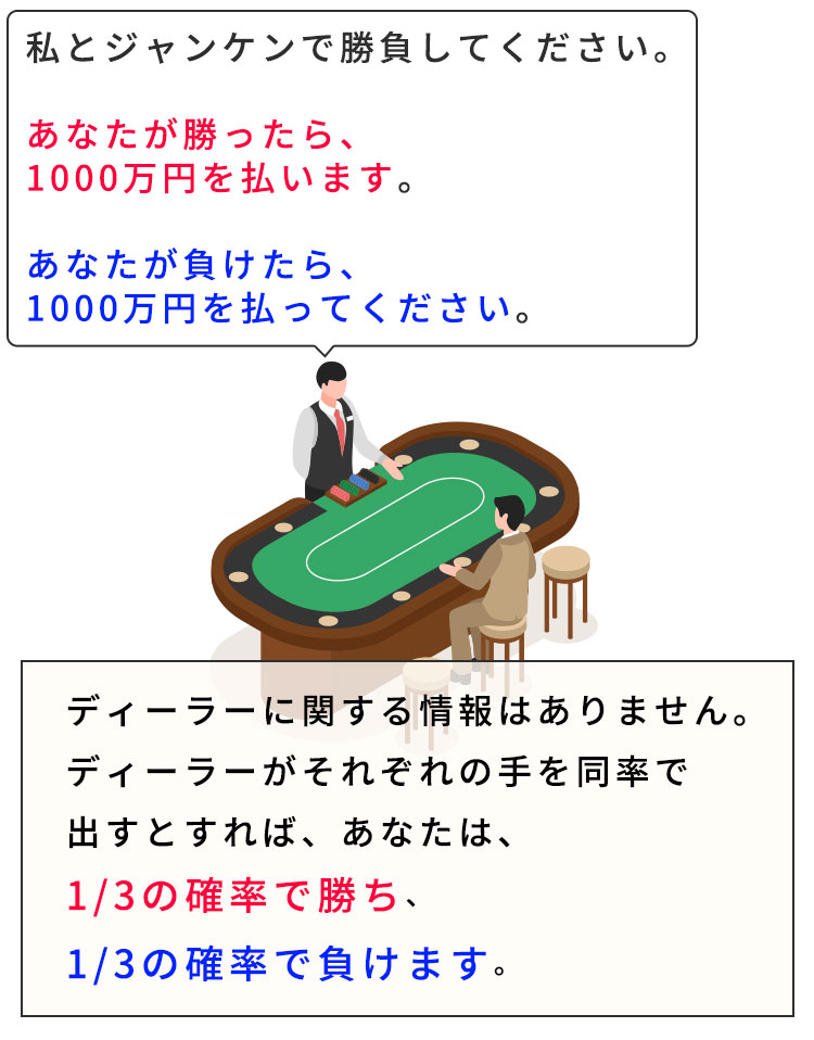 ジャンケンなら、相手が出す手の「確率」がわからない。